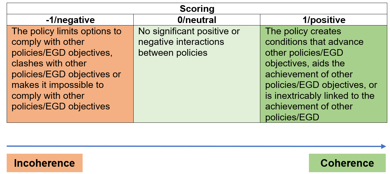 Assessing policy instruments against policy objectives and/or EGD objectives